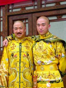 現(xiàn)場(chǎng)張國(guó)立、張默父子一起“黃袍加身”,各穿一身龍袍并肩亮相,父子倆還摟在一起合影,氣氛非常和諧!讹w龍倚天游》中飾演乾隆皇帝的張國(guó)立與飾演十四阿哥的張默再度出演父子!洱埛驱堷P非鳳》中張默則扮演光緒皇帝,張國(guó)立出演反派一號(hào)世鐸王爺。兩部劇同時(shí)開拍,也讓父子倆有機(jī)會(huì)“同登皇位”。不過父子倆從未在一起接受采訪,張國(guó)立當(dāng)著兒子的面向來是嚴(yán)父模樣,但背地里卻喜歡講兒子的好話。(趙楠楠)