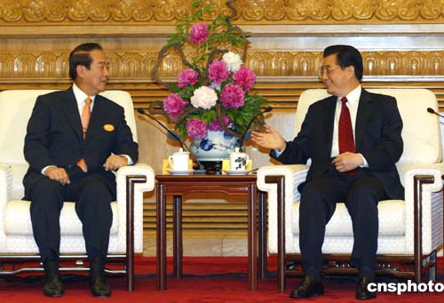 首先我代表中共中央向宋主席和夫人、向張副主席和夫人、向親民黨大陸訪問(wèn)團(tuán)的全體成員表示熱烈的歡迎并致以良好的祝愿。
