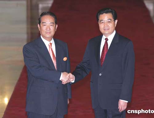 下午3時(shí)許,中共中央總書記胡錦濤與親民黨主席宋楚瑜在北京人民大會(huì)堂北大廳握手。隨后,胡錦濤會(huì)見了宋楚瑜。