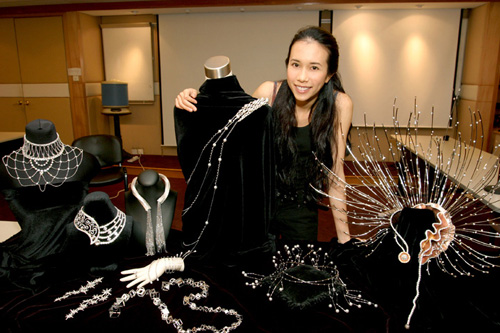 贊助商當(dāng)日準(zhǔn)備了超過(guò)十件得獎(jiǎng)的鉆飾予Karen試戴,所有鉆飾均是獨(dú)一無(wú)二的,總值超過(guò)三千萬(wàn)。Karen表示:“我的演唱會(huì)主題是閃耀,愈閃我愈開(kāi)心!倍鳮aren最喜歡的是其中一款項(xiàng)鏈,名為“熔融”,由超過(guò)一千三百六十顆白、粉紅及啡鉆鑲制,共三百一十四點(diǎn)三八卡,再加十八K白金及黃金,價(jià)值一千萬(wàn)以上。原來(lái)光是此飾物凈重已超出十磅,更需要兩位專業(yè)人士協(xié)助,才可順利戴上。Karen笑言:“無(wú)論幾重都要戴,因?yàn)檎娴暮闷粒腋鼤?huì)戴上這件特別的飾物做一個(gè)非常特別的表演,屆時(shí)大家一定要留意!