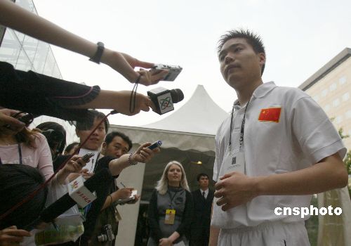 五月十五日,二○○五財(cái)富全球論壇在北京舉行體育圓桌會歡迎酒會,亞運(yùn)會中國臺球神童丁俊輝參加酒會并接受媒體采訪。作者:廖文靜
