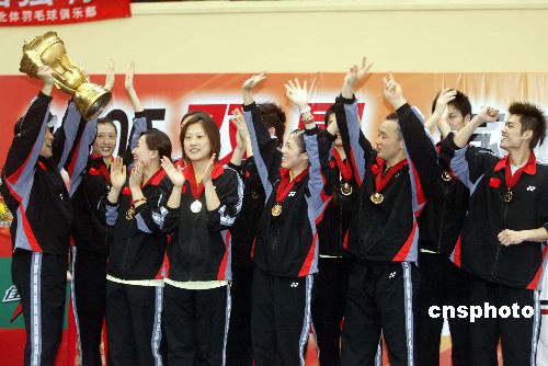 五月十五日晚,第九屆蘇迪曼杯世界羽毛球混合團體錦標(biāo)賽決賽在北京首都體育館結(jié)束,在中國隊對陣印度尼西亞隊的比賽中,中國隊?wèi){借混雙、男單、女單三戰(zhàn)全勝的戰(zhàn)績,順利奪得蘇迪曼杯。