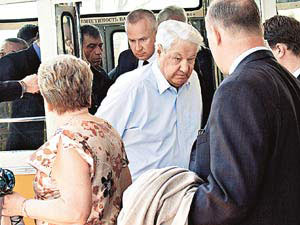 中新網(wǎng)5月17日電 據(jù)俄羅斯《共青團真理報》報道,俄羅斯前總統(tǒng)葉利欽16日乘專機飛抵烏拉爾地區(qū)基斯洛沃茨克市礦泉水城機場,同行乘客除以妻子奈娜為首的家人外,還有50年前烏拉爾工學(xué)院的同班同學(xué),一同前往療養(yǎng)勝地舉行聚會。