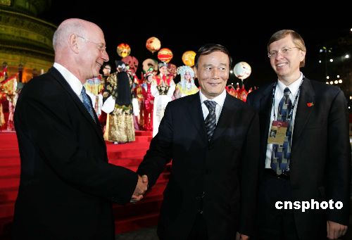 “在這美好的夜晚……我代表全體北京市民、向各位賓朋表示熱烈的歡迎……北京是一座歷史悠久、文化底蘊深厚的古都,同時也是一座朝氣蓬勃、向現(xiàn)代化快速邁進的城市……今天,一千五百萬勤勞和智慧的北京市民正在為實現(xiàn)新北京、新奧運的戰(zhàn)略構(gòu)想而努力工作……北京將以更加積極的姿態(tài)走向世界……熱烈歡迎中外跨國公司、金融機構(gòu)、高科技企業(yè)現(xiàn)代服務(wù)業(yè)企業(yè)來京投資,共享中國機會、北京機會”,王岐山依照與會諸人座位上早已放置的一份精美講稿原字誦讀。