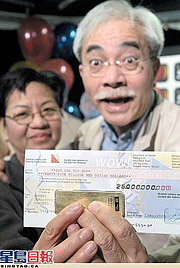 據(jù)報(bào)道,華文生與妻子回家則坐上豪華高級轎車。這名獨(dú)得巨獎的60歲長者對獲得幸運(yùn)之神眷顧感到十分興奮。