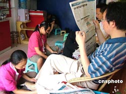 5月19日,重慶榮昌市民在某擦鞋連鎖店里接受擦鞋服務(wù)時閱讀報紙。據(jù)了解,該擦鞋連鎖店經(jīng)營者不僅將“一元錢擦鞋”的小生意開成連鎖店,還在店內(nèi)為顧客提供茶水、報刊閱覽等免費(fèi)服務(wù)。增添文化內(nèi)涵“連鎖擦鞋”受到市民的歡迎,每天顧客絡(luò)繹不絕。作者:朱蕓鋒