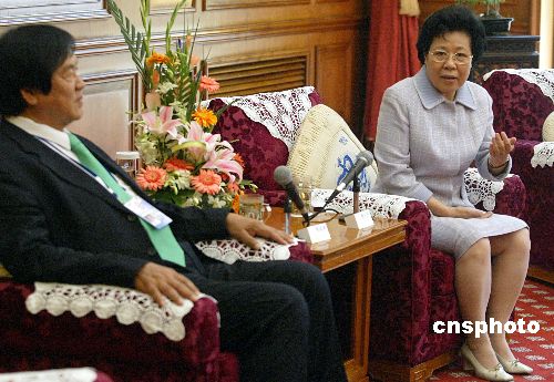 五月十九日,國務院僑務辦公室主任陳玉杰在北京會見了參加二○○五北京《財富》全球論壇的華商代表。作者:廖文靜