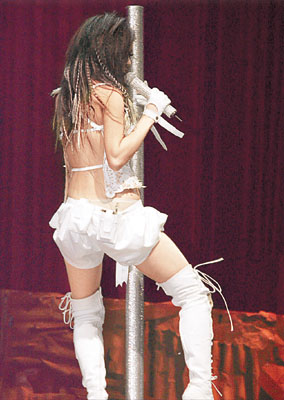 紅白斗音樂會吸引大批圈中人捧場,祖兒先化身一只十尺長蝴蝶獻唱慢歌,然后再變身“冶艷妖女”,身穿一件性感大露背低胸上衣、配超短熱褲,演唱梅艷芳的《冰山大火》時,攬住條柱大跳艷舞,更有意無意露出頗有看頭上圍,又忽然以手撫摸自己胸部,看得臺下觀眾熱血沸騰。
