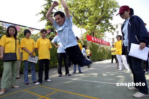 五月二十日,北京華文學(xué)院在北京舉行運動會,來自十七個國家的二百多名學(xué)生以及全體教職工參加了趣味橫生的運動會。圖為學(xué)生們在八十米折返跑的比賽中。作者:盛佳鵬