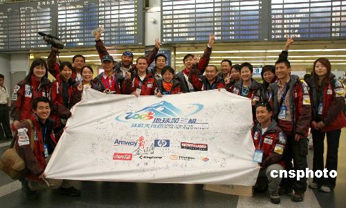 | “2005地球第三極珠峰大行動(dòng)”五月二十日從北京啟程。三十三名志愿者從首都機(jī)場出發(fā)前往西藏拉薩,他們將和西藏登山隊(duì)專業(yè)隊(duì)員、當(dāng)?shù)馗呱絽f(xié)作一起,克服珠峰地區(qū)高寒、狂風(fēng)、缺氧、低壓等惡劣的自然環(huán)境,對(duì)存留在珠穆朗瑪峰海拔5120米大本營至海拔8000米之間的登山廢棄物進(jìn)行全面清理。作者:陸媛