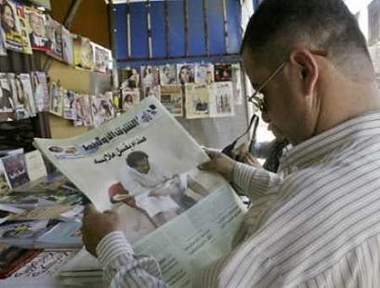 5月21日的英國(guó)《太陽(yáng)報(bào)》再次刊登了薩達(dá)姆在獄中的照片,圖為伊拉克的報(bào)亭出售刊有相關(guān)圖片的報(bào)紙。 (春風(fēng))