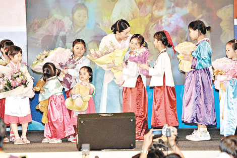 萬眾期待的李英愛,身穿韓服于三時(shí)十五分到場(chǎng),現(xiàn)場(chǎng)觀眾紛紛站起來,搖著手上的紙扇歡迎她,又以韓文高呼“我愛你”。她走紅地氈進(jìn)場(chǎng)時(shí),除了一直保持笑容,還向觀眾揮手及握手,令觀眾情緒十分高漲。她在后臺(tái)逗留了十分鐘,到三時(shí)廿五分才上臺(tái),即時(shí)以廣東話向現(xiàn)場(chǎng)巿民打招呼:“大家好,你好嗎?我系李英愛!比珗(chǎng)立時(shí)歡呼,她繼而用韓文道:“多謝大家在這里,希望大家學(xué)大長(zhǎng)今的精神,祝大家健康快樂!彼终f好開心跟大家近距離親密接觸,希望大家繼續(xù)愛她支持她,又以廣東話說:“多謝!多謝!”