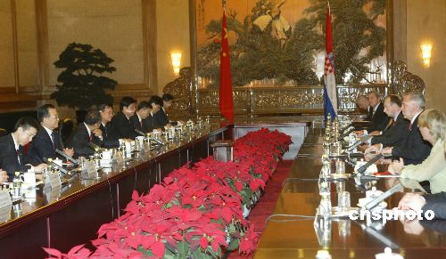 中新社北京五月二十六日電(記者李靜)中國(guó)總理溫家寶二十六日對(duì)來華訪問的克羅地亞總理薩納戴爾表示,此次中克雙方宣布建立全面合作伙伴關(guān)系,標(biāo)志著兩國(guó)關(guān)系進(jìn)入一個(gè)新的發(fā)展階段。