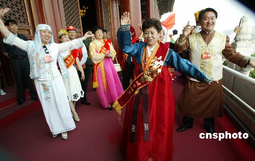 圖:少數(shù)民族模范代表天安門(mén)城樓上翩翩起舞