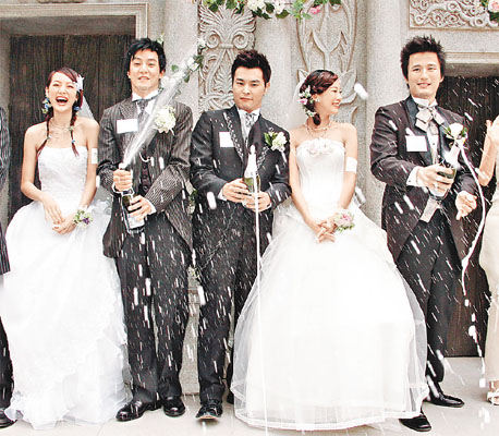 四人原本已私交甚篤,如今合作闖樂壇,感情再跨進(jìn)一步,昨日更公然“打情罵俏”,子維笑說﹕“我想同Daniel結(jié)婚!盌aniel則回應(yīng)﹕“看你的鉆石戒指有多大啦!弊蛉账娜吮緛砀饔信榘缧履铮蛐熳愉咳陨碓谟髮W(xué),Daniel全程唱獨(dú)腳戲,不及其他三子“艷福無邊”。