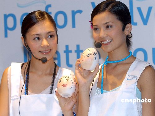 人氣偶像Twins 5月31日在香港出席代言化妝品牌BIOTHERM宣傳活動,Twins在活動上模擬在人的蛋臉上示范使用全新粉底,再畫上可愛的人像,以宣傳品牌新產(chǎn)品。作者:鄧慶樂