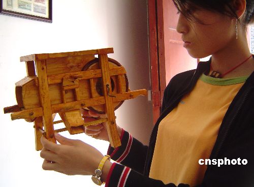 6月1日,重慶市云陽縣農(nóng)民盧炳安開發(fā)出的首批農(nóng)家用具“微縮版”在中國國家風景名勝區(qū)張飛廟三國桃園民俗風情街正式對外出售。喜好木工活的盧炳安在農(nóng)閑時瞄準“微縮版”農(nóng)家用具的市場前景,組織工匠成立了巴渝鄉(xiāng)戀民俗工藝坊,用上等竹、木精雕細琢出渝東特色的“微縮版”農(nóng)家用具,投放到張飛廟景區(qū)旅游產(chǎn)品市場,像玩具一樣的農(nóng)家用具迅即得到了人們的寵愛。作者:周斌