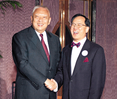 中新網6月3日電 據香港星島日報報道,曾蔭權昨日展開特首競選活動,他率先請來十六名曾獲大紫荊勛章的各界元老級人物助陣,他們包括全國政協(xié)副主席、前行政長官董建華、長實集團主席李嘉誠等。會面時間雖短,但多名與會人士會后都向傳媒表態(tài)“挺曾”。