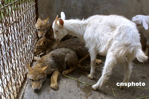 烏魯木齊動(dòng)物園內(nèi)三只小灰狼和五只可愛的小山羊共處一室,和諧共處,吸引眾多游客前來一探究竟。這些小家伙都由山羊媽媽的奶水喂養(yǎng)長(zhǎng)大,兩個(gè)多月的嬉戲玩耍使它們難舍難分,令飼養(yǎng)員在它們斷奶后仍不忍心將它們分開。作者:劉新