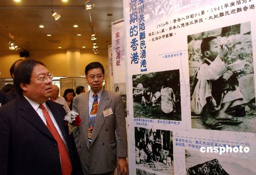 | 為紀念抗日戰(zhàn)爭勝利60周年,香港各界紀念抗戰(zhàn)勝利60周年活動籌委會3日在中央圖書館舉辦《抗戰(zhàn)時期的香港》圖片展覽。立法會主席范徐麗泰在開幕儀式上致辭。作者:譚達明