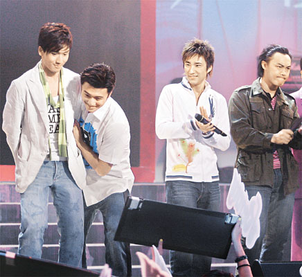 中新網(wǎng)6月7日電 據(jù)香港媒體報道,陳奕迅(Eason)與謝霆鋒曾經(jīng)一度稱兄道弟,感情甚佳,但在○三年,有傳因為陳奕迅不滿霆鋒經(jīng)常博宣傳而令二人感情有變,當(dāng)時二人曾公開否認。不過前晚陳奕迅與霆鋒出席《勁歌》時,不但在后臺未有打招呼,甚至在臺前,亦只見霆鋒跟同門師弟關(guān)智斌有講有笑,沒有與Eason任何交流,即使演出前亦各據(jù)一間化妝間,難道兩兄弟的“積怨”未解?