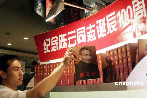 | 6月7日,一位讀者在北京王府井新華書店一書架前,翻看新上市的《陳云傳》。為紀(jì)念陳云同志誕辰100周年,經(jīng)中共中央批準(zhǔn),由中共中央文獻(xiàn)研究室編寫,金沖及、陳群任主編,曹應(yīng)旺任副主編的《陳云傳》,已由中央文獻(xiàn)出版社出版,并在全國各地新華書店發(fā)行。作者:陳曉根