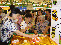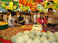 在漳州市區(qū)主會場的新華都購物商場,記者看到,鮮紅的芒果、金黃的鳳梨、黑里透紅的蓮霧、晶瑩剔透的楊桃等臺灣名優(yōu)水果一上貨架,立即吸引了許多正在購物的民眾。大家爭著一睹臺灣名優(yōu)水果的“風采”,有的還買了一些回去嘗嘗鮮。