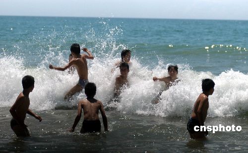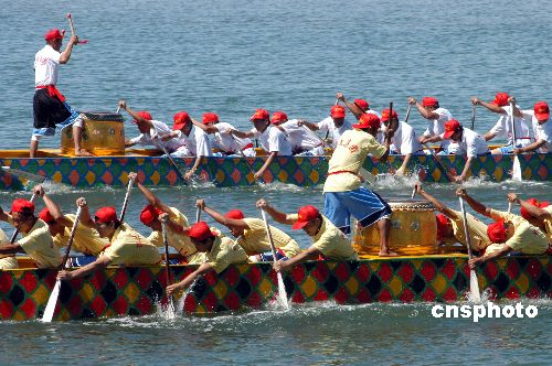 6月11日,海南博鰲16支龍舟隊冒著烈日在萬泉河入海口舉行精彩激烈的龍舟大賽,慶祝傳統(tǒng)佳節(jié)端午節(jié)。在博鰲海濱,不少村民攜兒帶女下海游泳,在端午節(jié)這一天俗稱洗龍水祈平安。作者:蒙鐘德