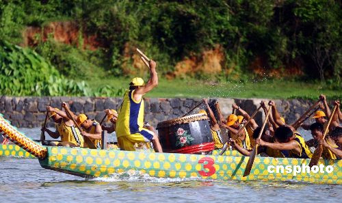 圖:海南民眾賽龍舟歡度端午節(jié)