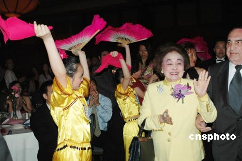 年屆八十的陳香梅從事社會活動六十年,積極促進(jìn)中美關(guān)系,圖為陳香梅女士當(dāng)?shù)貢r間六月十二日出席芝加哥慶祝她從事社會活動六十周年的聯(lián)歡晚會,受到熱烈歡迎。作者:劉小青