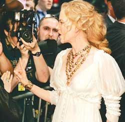 形象溫柔的妮可基德曼突然當眾發(fā)飆,讓現(xiàn)場氣氛一度相當尷尬,對照起她在幾分鐘前接受專訪的模樣,說“我們需要娛樂,開懷暢笑。我希望這部電影能夠帶來如此效果,還有喔,要相信愛的力量。”的時候,簡直是判若兩人。