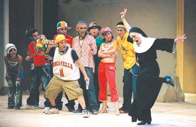 很多人都對(duì)黑人女星烏比·戈德堡主演的喜劇電影《修女也瘋狂》記憶猶新,《跑路救天使》即改編自此片。該劇在2004年由臺(tái)灣果陀劇場(chǎng)推出,當(dāng)時(shí)曾創(chuàng)下連演31場(chǎng)場(chǎng)場(chǎng)爆滿的記錄,很多場(chǎng)次中謝幕時(shí)間竟長(zhǎng)達(dá)30分鐘。而果陀劇場(chǎng)也是臺(tái)灣戲劇界的重要組成部分,它一直致力于“中文歌舞劇”的演出,獲得過多項(xiàng)表演大獎(jiǎng),被業(yè)內(nèi)人士稱為“東方百老匯”。有意思的是該劇中還使用了很多觀眾耳熟能詳?shù)牧餍懈枨,像《讀你》、王菲的《我愿意》、張惠妹的《姐妹》、劉文正的《誰在眨眼睛》等等,而且風(fēng)格與我們熟悉的曲調(diào)有了很大改變,像《讀你》就被唱出了“圣歌”的味道。