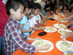 據(jù)美國僑報報道,當天的“巴結(jié)老爸”活動上,主辦單位特地為老爸們制作的“愛心炒飯”節(jié)目吸引了不少小朋友報名參加,來自35個家庭的數(shù)十名華裔少年兒童將展示臺擠得水泄不通,有的是兄妹上陣,有的是姐弟聯(lián)手,親手為爸爸作出一份充滿愛心和童心、美味可口的別致炒飯。父親節(jié)前夕獲得這樣一份精心制作的禮物,讓現(xiàn)場眾多的老爸們笑得嘴都合不攏。