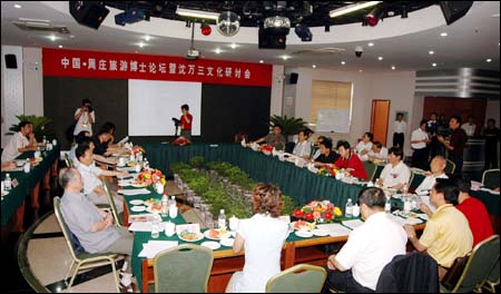 會上,來自上海、南京、安徽等高校的教授分別闡述了自己的觀點,上海師范大學(xué)教授范能船以《沈萬三思維模式和周莊旅游的拓新》為題發(fā)表觀點,他認(rèn)為沈萬三“開拓創(chuàng)新-多元開新-穿越時空造新”的思維財富,給拓新周莊旅游以無限的啟迪,范能船從打造周莊旅游新產(chǎn)品,拓展旅游新市場兩方面,詳細(xì)闡述了周莊旅游可持續(xù)發(fā)展的新路子。