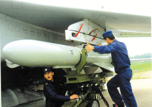 一個(gè)月后,渤海某海域,波詭云譎。兩架攜帶新型空艦導(dǎo)彈的“飛豹”戰(zhàn)機(jī)穿云破霧,如離弦之箭撲向預(yù)定海區(qū)。距靶標(biāo)數(shù)十公里外,副團(tuán)長王衛(wèi)打開雷達(dá),迅速鎖定目標(biāo),果斷按下發(fā)射按鈕。“導(dǎo)彈拖著漂亮的尾焰離開飛機(jī)時(shí),我的心都要跳出來了!”王衛(wèi)回憶起當(dāng)時(shí)的情形,至今仍然掩飾不住興奮。首發(fā)命中,這是從飛豹射出的第一枚空艦導(dǎo)艦!緊接著,又有5枚導(dǎo)彈投入試射,發(fā)發(fā)命中!