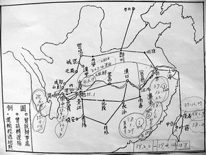 該地圖是那志良在協(xié)助臺(tái)灣“教育部部長(zhǎng)”杭立武編寫《中華文物三十年》時(shí)畫出的,王慶臺(tái)在整理資料時(shí)參考了該圖并進(jìn)行了一些補(bǔ)充和完善!洞\(yùn)合約書》手抄副本