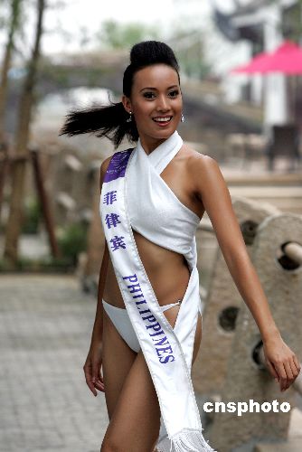 組圖:國際旅游小姐大賽佳麗在水鄉(xiāng)周莊拍攝泳裝照