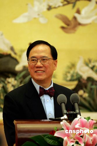 中國國家主席胡錦濤六月二十四日下午在北京人民大會堂會見前來宣誓就職的香港特別行政區(qū)行政長官曾蔭權(quán),曾蔭權(quán)與會錦濤主席會見后舉行記者會,回答記者們的提問。作者:毛建軍