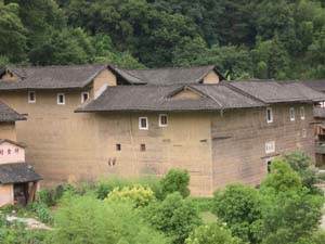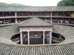 永定縣境內(nèi)的大型方型、圓型土樓有8000余座,最壯麗堂皇的、最有代表性的是洪坑村振成樓。這一“土樓王子”按八卦觀念結(jié)構(gòu)建造,卦與卦之間設(shè)防火墻,坐北朝南,調(diào)節(jié)陰陽。每卦與內(nèi)層一樓采用北方四合院格式。全樓的設(shè)施布局既有蘇州園林的印跡,也有古希臘建筑的特點(diǎn)。堪稱中西合璧的建筑奇葩。1995年它的建筑模型與北京天壇作為中國南北圓形建筑代表參加了美國落杉磯世界建筑展覽會(huì),引起了轟動(dòng),一直被稱為“世界上獨(dú)一無二的神話般的山區(qū)土樓建筑”。