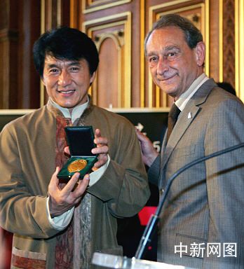 中新網(wǎng)6月29日電 據(jù)光華日?qǐng)?bào)報(bào)道,法國(guó)巴黎市長(zhǎng)德拉諾今天在市政廳頒與成龍巴黎市榮譽(yù)勛章,表彰這位香港動(dòng)作巨星的演藝成就及他的笑容。