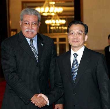在談到中國與南太島國經(jīng)貿(mào)合作時,溫家寶說,為加強與斐濟等南太國家的經(jīng)貿(mào)往來,中方倡議建立“中國━太平洋島國經(jīng)濟發(fā)展合作論壇”。中方愿與斐方就此保持溝通與合作,推動該論壇盡早啟動。