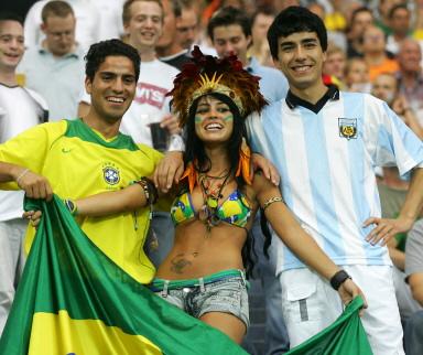 阿根廷本場比賽缺少了多名主力,主教練佩克爾曼在排兵布陣上行出險招。出人意料的讓海因策出任中后衛(wèi),同時,鋒線上也排出了小德爾加多這樣的冷門球員頂替停賽的薩維奧拉,而薩穆埃爾、特維茲、埃馬爾等大牌球員則坐在了替補席上。巴西隊則基本上主力盡遣,同時派上了羅納爾迪尼奧、羅比尼奧、卡卡和阿德里亞諾等多名攻擊手。