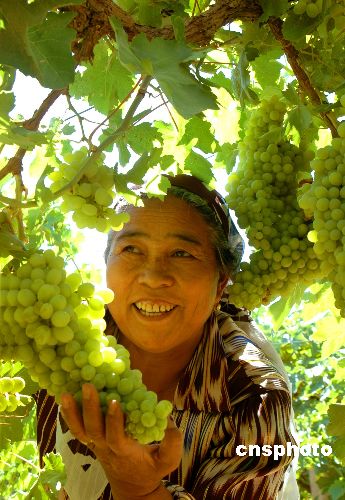 6月30日,吐魯番市亞爾鄉(xiāng)戈壁村葡農(nóng)依色拉提·吾秀爾在采摘成熟的葡萄。素有“葡萄王國(guó)”之稱(chēng)的新疆吐魯番,自6月下旬以來(lái),種植的50萬(wàn)畝無(wú)核白、紅葡萄、瑪奶子、翡翠綠、黑葡萄、玫瑰香、白布瑞克等500多個(gè)優(yōu)良品種的葡萄相繼成熟并上市。據(jù)了解,2003年吐魯番葡萄獲得國(guó)家原產(chǎn)地域產(chǎn)品保護(hù)。作者:劉健4509