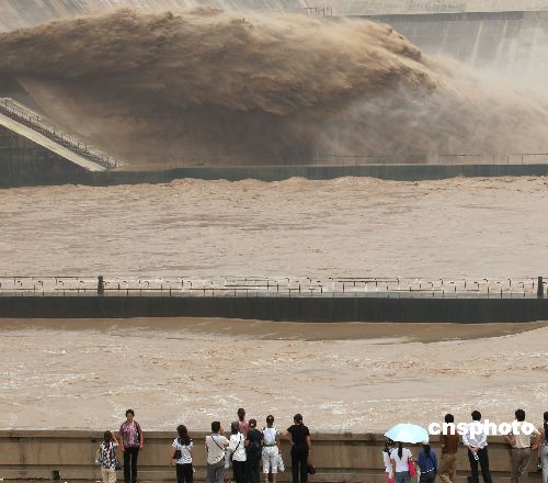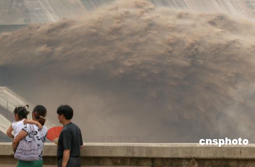 | 6月30日,小浪底水庫排沙洞黃濁水流奔騰而出,再現(xiàn)“黃龍咆哮”奇觀。小浪底水庫自6月16日首次進(jìn)行生產(chǎn)性調(diào)水調(diào)沙以來,水庫水位已由16日調(diào)水調(diào)沙前的247.86米下降至27日8時(shí)的229.63米。按照這次調(diào)水調(diào)沙計(jì)劃,當(dāng)小浪底水庫水位降至230米以下時(shí),上游萬家寨水庫與三門峽水庫水量將通過調(diào)度“接力”調(diào)水,在一段時(shí)間內(nèi)制造“人工洪峰”持續(xù)沖刷小浪底水庫庫尾淤沙,形成異重流,將小浪底水庫淤沙推至壩前,并通過小浪底水庫排沙洞排出。6月29日下午16時(shí),小浪底水庫出現(xiàn)人工異重流,黃濁水流從排沙洞咆哮下泄,它標(biāo)志著小浪底水庫人工異重流排沙再次運(yùn)用成功。據(jù)悉此次排沙過程將持續(xù)到7月1日晨6時(shí),小浪底水位也將降至225米。在2004年黃河調(diào)水調(diào)沙中,黃河水利工作者在世界上首次人工塑造異重流成功。作者:張曉理