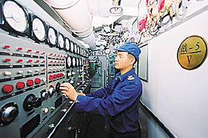 “戰(zhàn)斗警報!”指揮員一聲令下,警鈴驟起,處于水面航行狀態(tài)的潛艇迅速潛進(jìn)海里,對抗訓(xùn)練隨即開始。潛艇在海中時而懸停,時而變速航行,而時變向疾馳……經(jīng)過激烈對抗后,聲納屏上顯示的波峰,隨著一枚枚導(dǎo)彈和魚雷的攻擊,很快就找不到目標(biāo),潛艇大獲全勝。