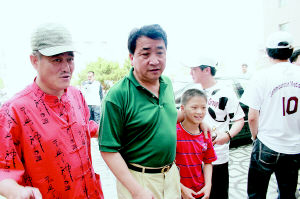 中新網7月4日電 據沈陽晚報報道,前晚,趙本山掛帥遼足的首場戰(zhàn)役在鞍山吹響號角,造聲勢也好,壯士氣也罷,趙董事長一揮手,就召來了演藝圈一票好友前來捧場。那英、凌峰、滿文軍、姜昆、范偉、臧天朔、梁天……這些人組成的助威團成為昨晚賽場內外一道亮眼的風景線。記者在賽前堵住了姜昆、凌峰和滿文軍3位“趙董好友”,他們在大話足球的同時,也對趙本山涉獵足球圈發(fā)表了一番肺腑之言。