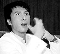 中新網7月4日電 據北京晨報報道,昨天晚上,七劍中最鋒利的“由龍劍”——甄子丹來到北京,接受京城媒體的采訪。甄子丹身著白色西裝,用粵式普通話跟在場記者打招呼。在現(xiàn)場,甄子丹和記者聊起了《七劍》、武功和功夫片。不同于電影中一貫的冷酷和面無表情,閑聊時的甄子丹不時露出笑容,顯得很是親切。