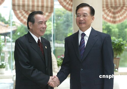 七月四日,中國國務(wù)院總理溫家寶在云南昆明會(huì)見前來參加大湄公河次區(qū)域經(jīng)濟(jì)合作第二次領(lǐng)導(dǎo)人會(huì)議的越南總理潘文凱。作者:廖文靜