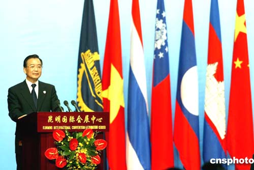 圖:溫家寶為大湄公河次區(qū)域經(jīng)濟合作第二次領(lǐng)導人會議致辭