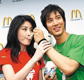 大家為了炒熱訪談氣氛,聊起白靈“激凸”,王力宏說,“女人也可以講激凸嗎?”經(jīng)紀(jì)人察覺沒人聊麥當(dāng)勞廣告,大聲說:“現(xiàn)在變白靈研討會啦?”EQ很高的王力宏扮白臉:“下次有機(jī)會想跟她(白靈)見面!